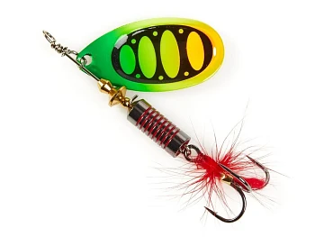 С какой бы стороны хищная рыба не смотрела на приманку, ее расцветка остается одинаковой и привлекательной, что повышает интерес к блесне и, в итоге, приводит к результативной атаке.