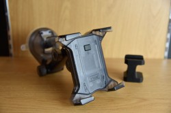 Установка девайса в автодержатель не составляет абсолютно никаких усилий и занимает минимум времени. Устройство спроектировано, таким образом, что фиксация планшета осуществляется легким нажатием на кнопку, которая расположена по центру автодержателя, после чего, активный крепёж плотно фиксирует гаджет. Благодаря раздвижной конструкции вы сможете устанавливать планшеты, ширина которых составляет от 110 до 190 мм. При этом конструкция автодержателя такова, что может быть отрегулирована под нужным углом, абсолютно не загораживая обзор для водителя.