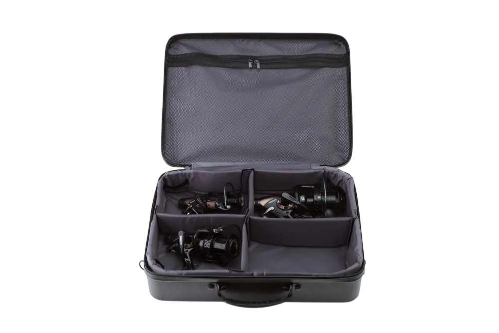 - Жесткий кейс Гарри Зонтер предназначен для перевозки и хранения четырех спиннинговых катушек размера 7000-8000.