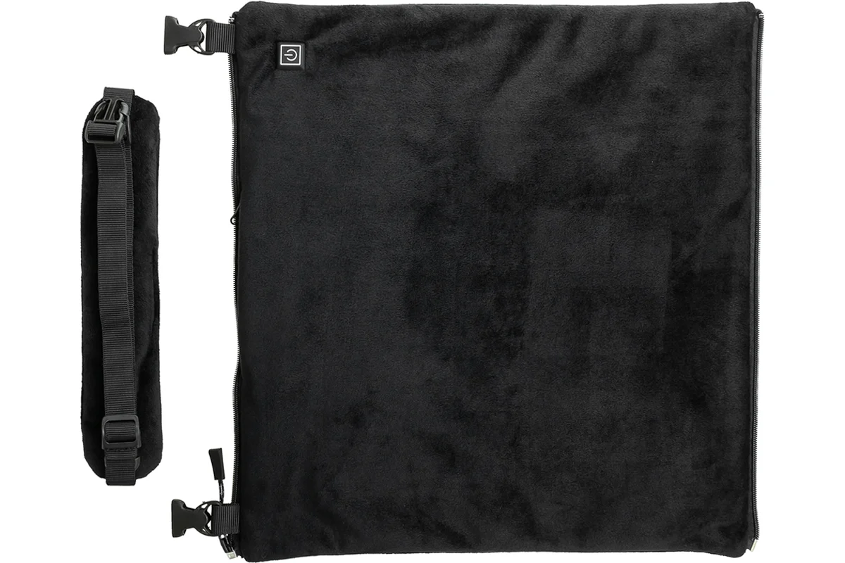 • Разъемная конструкция позволяет использовать муфту в качестве подогрева сиденья рыболовного ящика, туристического стула или для утепления зоны поясницы.