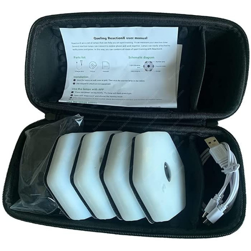 Сфера применения : Продукция широко используется в боксе, баскетболе, бадминтоне, тхэквондо, футбол, реабилитационных тренировках для пожилых людей, детской физической культуре и других областях. Bluetooth дальнего действия: расстояние подключения Bluetooth может поддерживать в среднем 35 м (высокая версия). Дополнительно возможно установить крепление к датчику и крепление вокруг боксерского мешка L145см . Для запуска световых датчиков необходимо скачать приложение ReactionX, приложение поддерживает Android и iPhone.