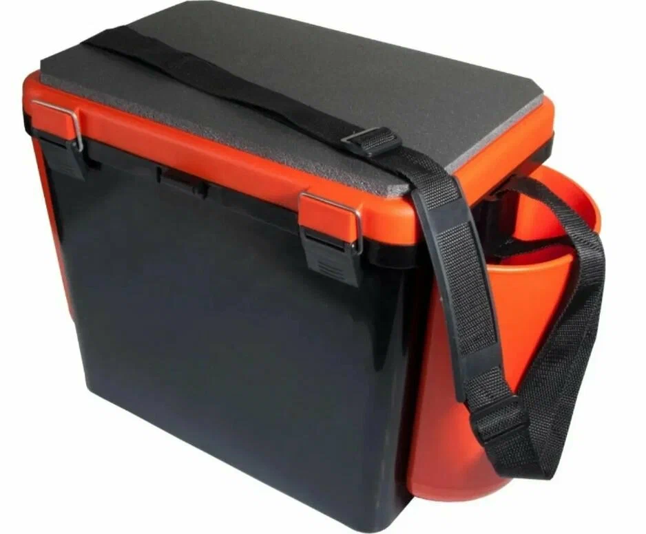 Ящик рыболовный зимний "FishBox" односекционный (19л) оранжевый для снастей. Органайзер для хранения. Информация для покупателей! Все комплектующие ящика находятся внутри ящика , доп карманы и ремень для переноски. Ремень как правило лежит в одном из 4 карманов на защелках. В конструкции ящиков рыболовных FISHBOX предусмотрено все, что создает рыболову комфортные условия ловли. Оптимальная форма, размер и пропорции ящиков специально рассчитаны таким образом, чтобы обеспечивать хорошую устойчивость, легкость в использовании, удобство при переноске. В положении сидя любой человек будет чувствовать себя комфортно. Нагрузка: 130 кг. Материал - морозоустойчивый, ударопрочный пластик, который не впитывает и не пропускает воду. Объем основного отделения: 19 л.